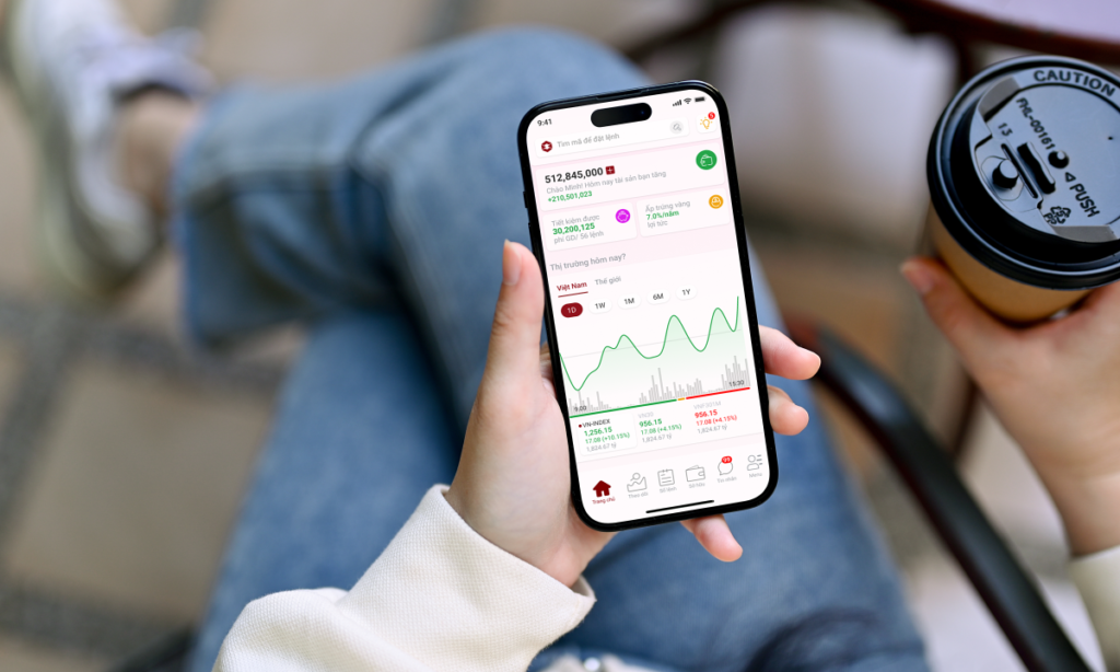 Nhà đầu tư đang theo dõi thị trường cổ phiếu trên điện thoại. Ảnh: DNSE