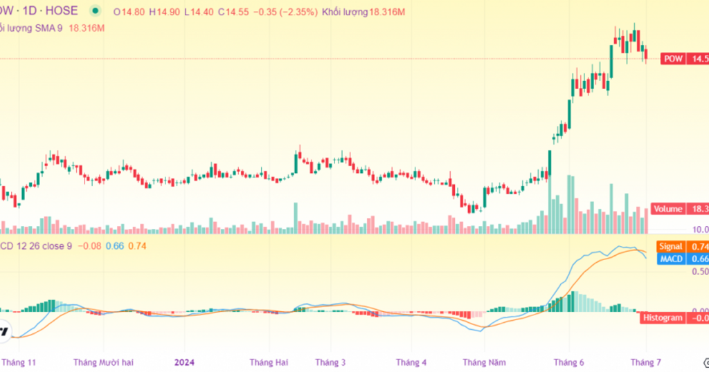 Đây là phiên điều chỉnh thứ hai trong ba phiên gần nhất của POW, sau khi mã thiết lập mức cao nhất hai năm (15.300 đồng – ngày 26/6). Động thái bán ra được ghi nhận trong bối cảnh giá cổ phiếu đã tăng tới 46% chỉ trong 2 tháng trước đó.