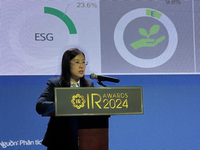 Tại hội thảo IR View về chủ đề “xanh hóa” diễn ra trong khuôn khổ Lễ Vinh danh IR Awards 2024 vào sáng ngày 24/09, bà Bùi Thị Thao Ly – Giám đốc Trung tâm Phân tích Công ty TNHH Chứng khoán Shinhan Việt Nam (SSV), đại diện cho bên bán – chia sẻ về cách tiếp cận dòng vốn ngoại thông qua việc công bố thông tin ESG.