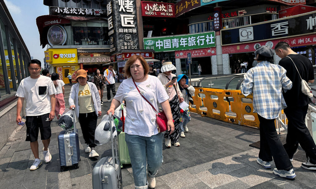 Người dân đi qua một nhà hàng ở Thành Đô (Tứ Xuyên, Trung Quốc) tháng 4/2024. Ảnh: Reuters