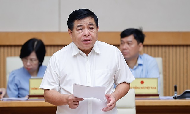 Bộ trưởng Kế hoạch & Đầu tư Nguyễn Chí Dũng báo cáo tại phiên họp Chính phủ ngày 1/6. Ảnh: VGP.