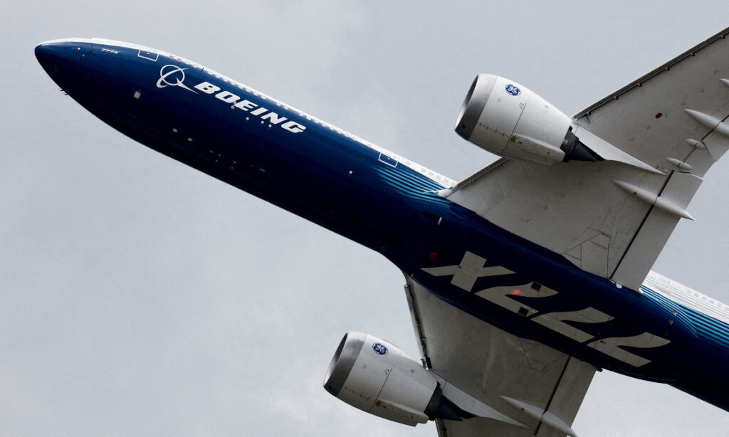 Một chiếc Boeing 777 trình diễn tại Triển lãm Hàng không Quốc tế Paris năm 2023. Ảnh: Reuters