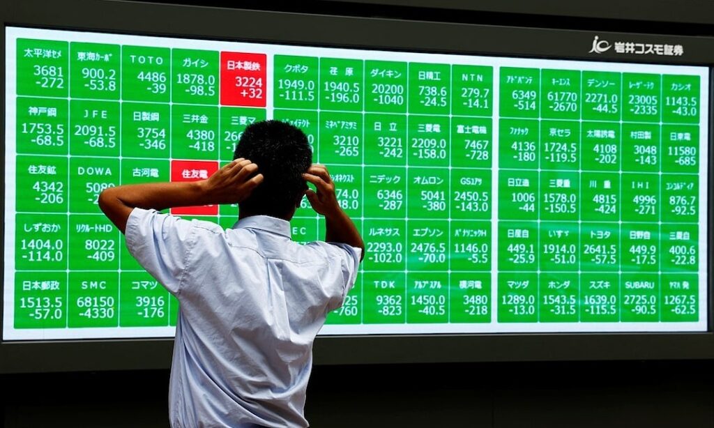 Bảng điện tử bên ngoài một công ty chứng khoán ở Tokyo (Nhật Bản) hôm 2/8. Ảnh: Reuters