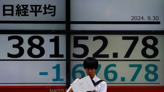Một người qua đường đứng trước bảng điện tử hiển thị chỉ số chứng khoán Nikkei trung bình bên ngoài một công ty môi giới ở Tokyo, Nhật Bản, ngày 30 tháng 9 năm 2024. Ảnh REUTERS/Kim Kyung-Hoon