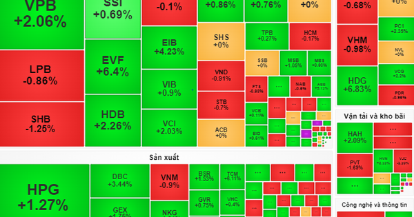 Trong số 30 mã cổ phiếu vốn hóa lớn ( VN30), có 18 mã tăng giá như BCM (+7%), BVH (+3,7%), HDB (+2,3%), VPB (+2,1%), HPG (+1,3%) …