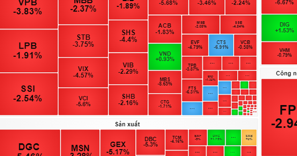 Theo đó, hầu hết các nhóm ngành đều chìm trong sắc đỏ với số lượng cổ phiếu giảm giá khá áp đảo. Các nhóm cổ phiếu công nghệ, chứng khoán, ngân hàng, bán lẻ… đang có tác động không tốt lên thị trường.