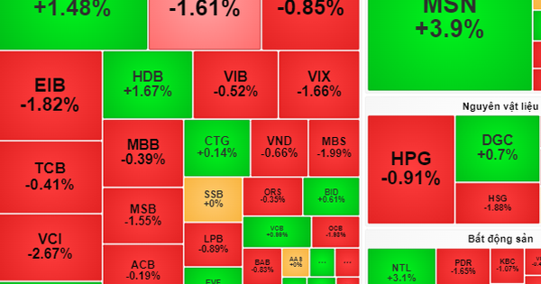 Những cổ phiếu ngân hàng giảm giá đáng chú ý bao gồm: TCB (-0,4%), STB(-1,6%), MSB (-1,5%), MBB (-0,3%), ACB (-0,2%), VIB (-0,5%), TPB (-0,8%), SHB (-0,4%)…