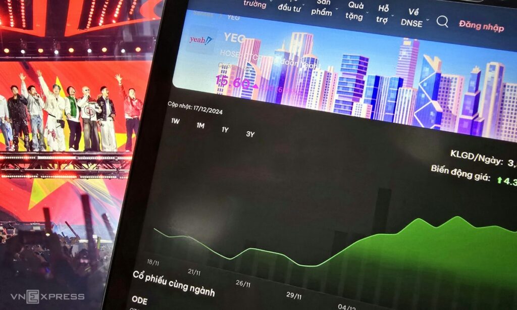 Thị giá YEG khởi sắc từ khi nhà sản xuất này tổ chức concert tại TP HCM với quy mô khoảng 20.000 người hồi giữa tháng 10. Từ đó đến nay, giá cổ phiếu của Yeah1 đã tăng thêm hơn 52%. Ngoài ra, chương trình “Chị đẹp đạp gió” của doanh nghiệp này đang phát sóng cũng thu hút nhiều người xem.