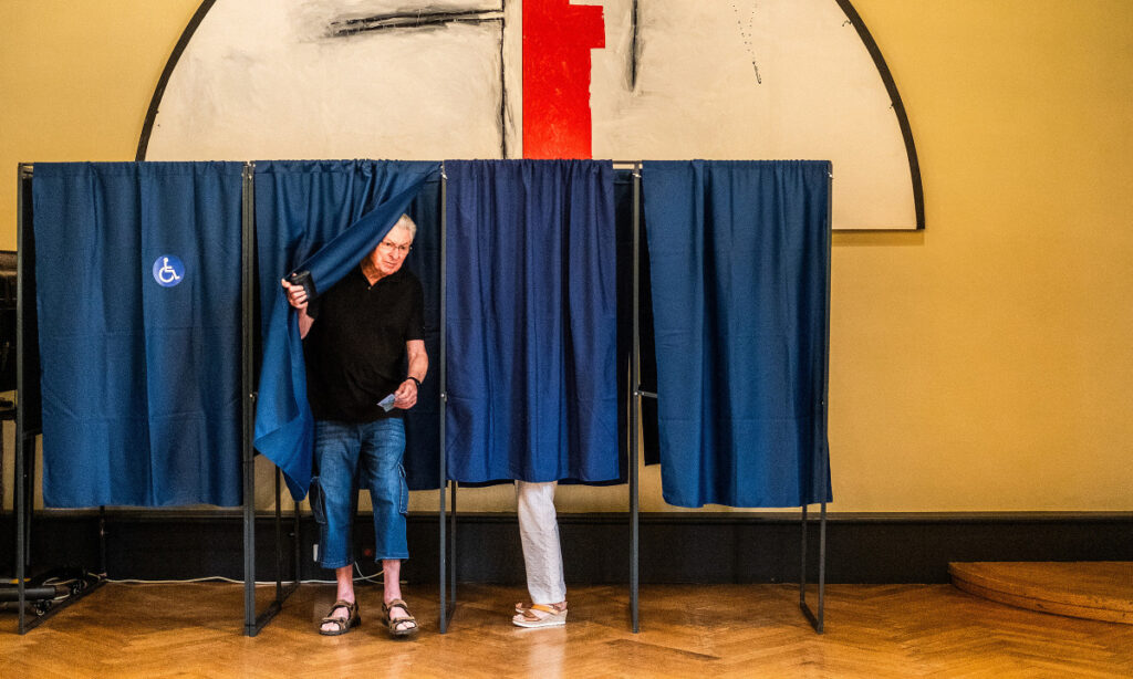 Cử tri đi bỏ phiếu trong vòng hai cuộc bầu cử quốc hội Pháp tại thành phố Perpignan, miền nam đất nước, ngày 7/7. Ảnh: AFP