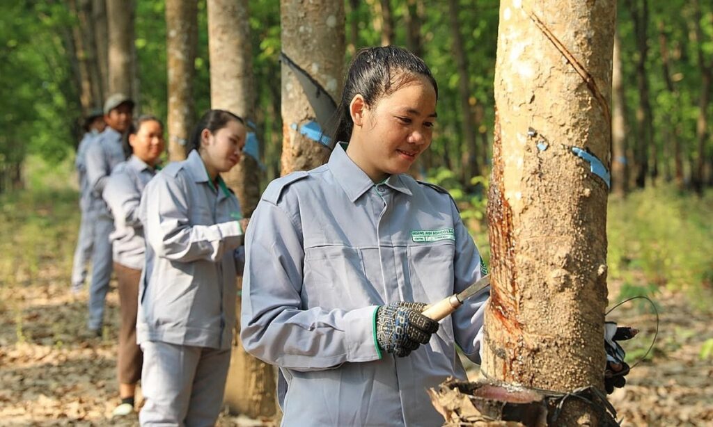 Công nhân đang làm việc tại nông trường cao su của Thaco Agri. Ảnh: Thaco Agri