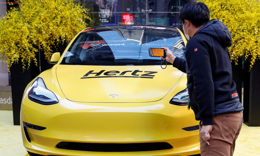 Một chiếc Tesla của Hertz trưng bày ở New York ngày 9/11/2021. Ảnh: Reuters
