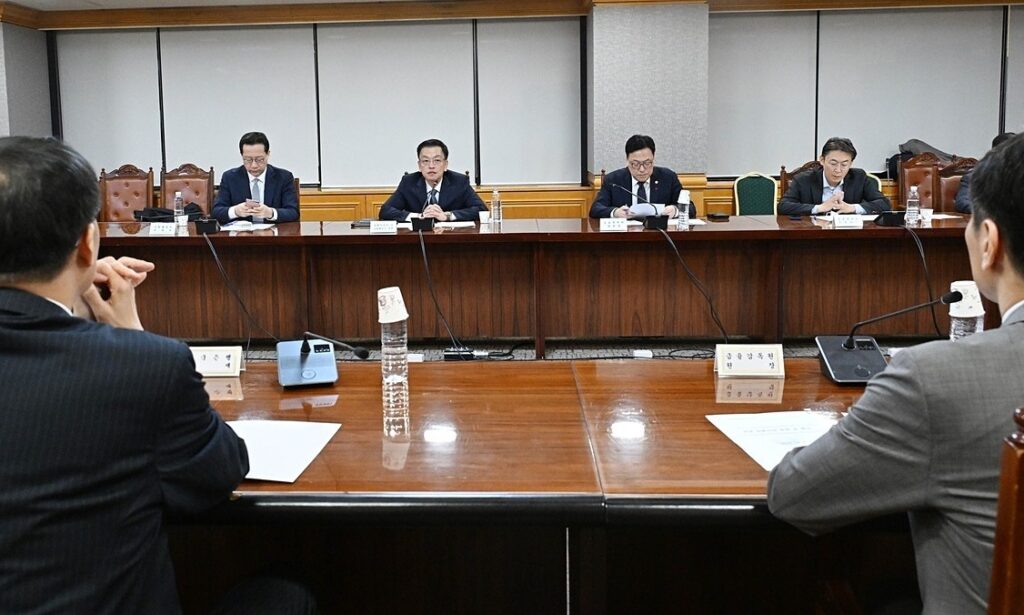 Bộ trưởng Tài chính Choi Sang-mok (thứ hai từ trái sang) trong cuộc họp sáng 4/12. Ảnh: Yonhap