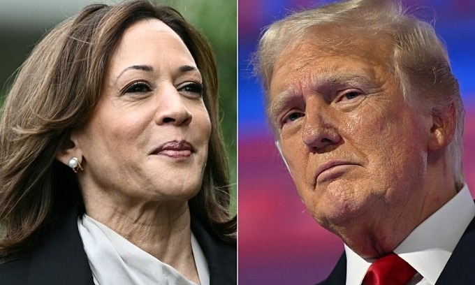 Phó tổng thống Mỹ Kamala Harris (trái) và ứng viên tổng thống đảng Cộng hòa Donald Trump. Ảnh: AFP