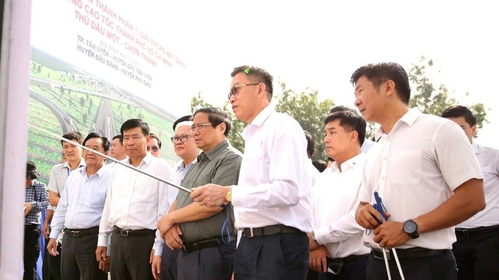 Sáng ngày 26/9, trong chương trình công tác tại Bình Dương, Thủ tướng Phạm Minh Chính đến khảo sát thực địa, kiểm tra tiến độ triển khai dự án đường cao tốc TP. HCM – Thủ Dầu Một – Chơn Thành đoạn qua địa bàn tỉnh Bình Dương.