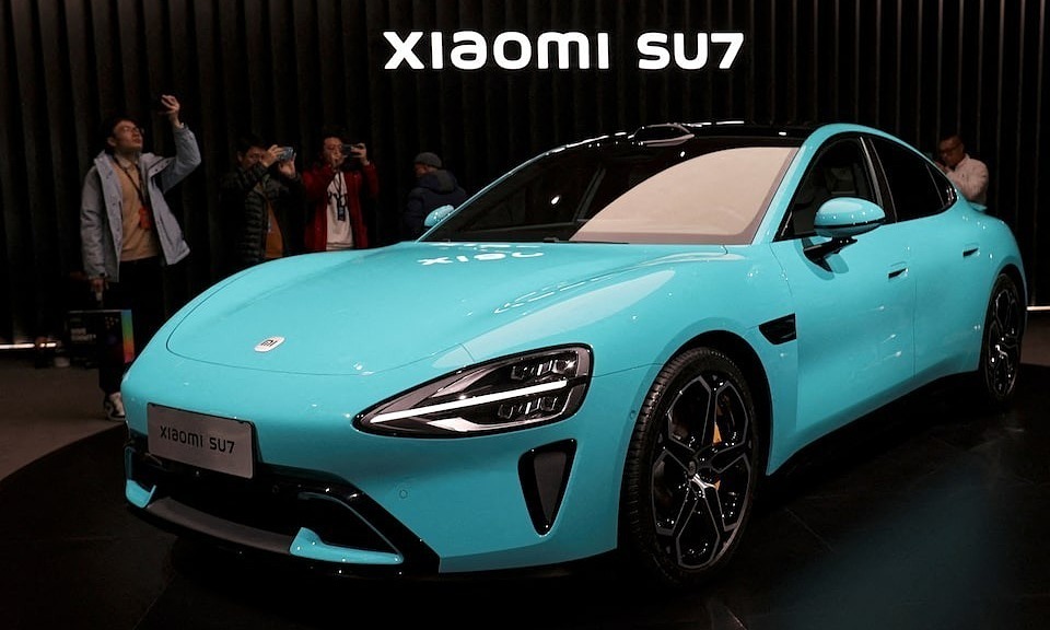 SU7 – xe điện đầu tiên của Xiaomi – trưng bày tại Bắc Kinh. Ảnh: Reuters