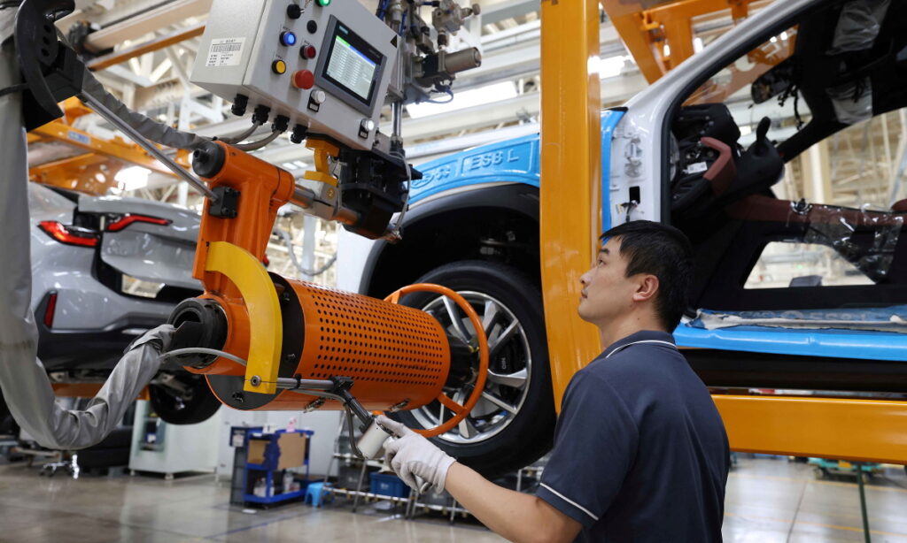Một nhân viên làm việc trên dây chuyền sản xuất xe điện Nio tại Hợp Phì, tỉnh An Huy, Trung Quốc ngày 28/8/2022. Ảnh: Reuters
