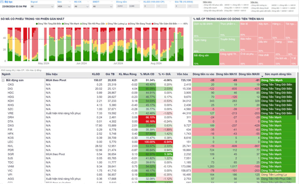 Dòng tiền ở các cổ phiếu có kết quả hoạt động kinh doanh tốt trong quý II/2024 đang không lan toả và mạnh bằng dòng tiền đầu cơ bắt đáy cổ phiếu từ nền thấp, rất ít mã đạt được sự tăng trưởng về giá so với đầu nhịp chỉnh.