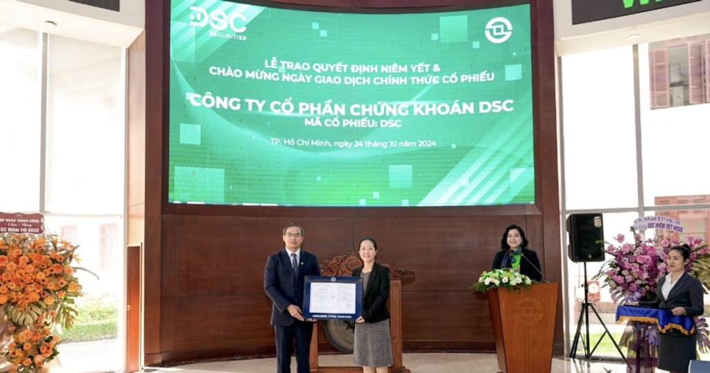 Ngày 24/10/2024, CTCP Chứng khoán DSC (MCK: DSC) đã chính thức được niêm yết và giao dịch tại Sở Giao dịch Chứng khoán TP. Hồ Chí Minh (HoSE).