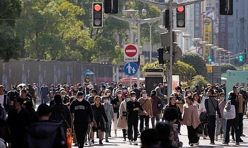 Người dân bên ngoài một khu mua sắm ở Thượng Hải (Trung Quốc). Ảnh: Reuters