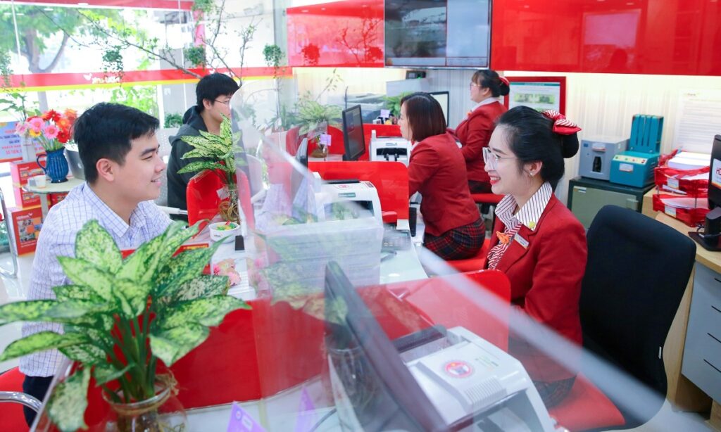 Khách giao dịch tại trụ sở ngân hàng. Ảnh: HDBank