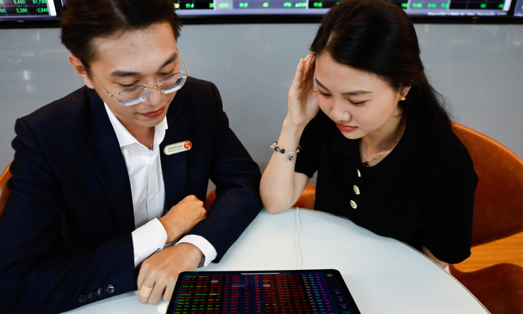 Nhà đầu tư đang theo dõi bảng điện tại một công ty chứng khoán ở quận 1 (TP HCM), tháng 10/2024. Ảnh: An Khương
