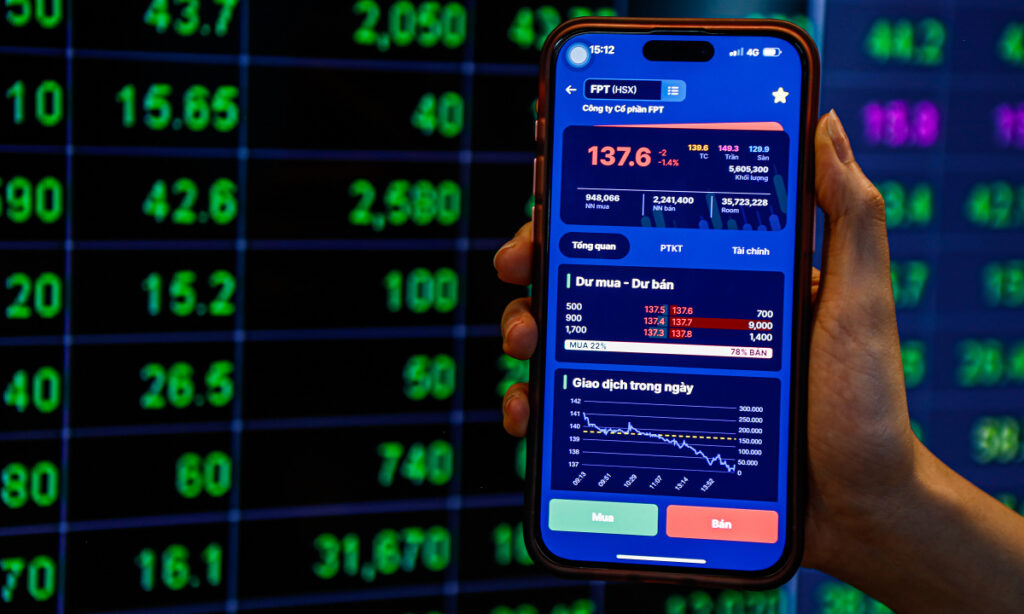 Nhà đầu tư đang theo dõi cổ phiếu FPT trong một phiên giảm hồi tháng 10/2024. Ảnh: An Khương