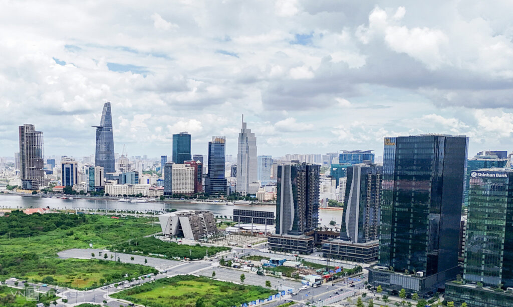 Một góc bán đảo Thủ Thiêm với căn hộ hạng sang và văn phòng hạng A nhìn về quận 1, TP HCM vào tháng 8/2024. Ảnh: Quỳnh Trần