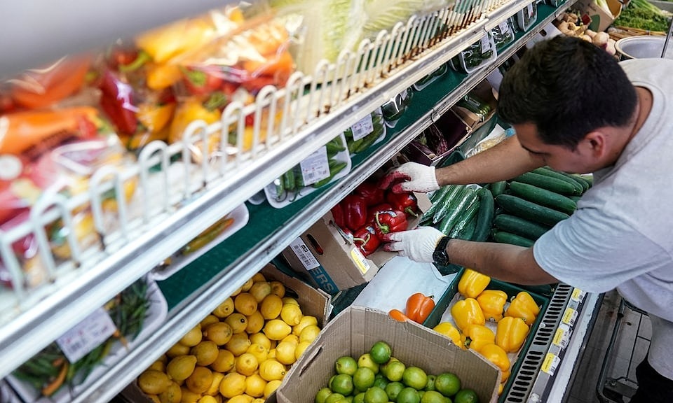 Nhân viên xếp rau củ trong một siêu thị ở Washington (Mỹ). Ảnh: Reuters