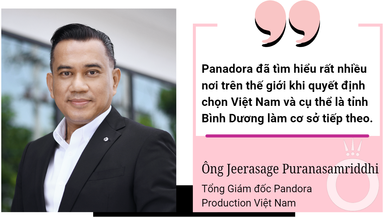 Dự án mở rộng năng lực sản xuất của Pandora được Ban quản lý các khu công nghiệp Bình Dương cấp giấy chứng nhận đăng ký đầu tư vào tháng 3 năm ngoái và có thời hạn hoạt động đến năm 2067. Tổng mức đầu tư khoảng 3.7 ngàn tỷ đồng (150 triệu USD), vốn góp thực hiện dự án 230 tỷ đồng chỉ chiếm khoảng 6.13%.