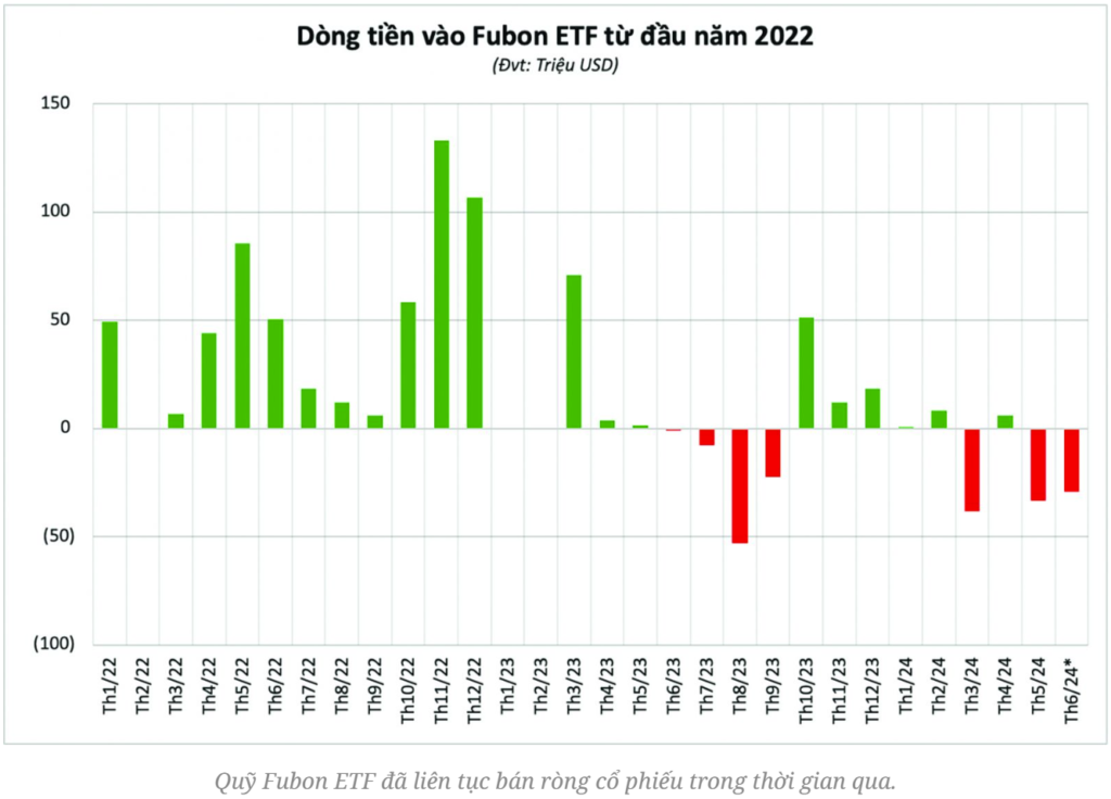 Tính đến ngày 14/6, quy mô của Fubon ETF đạt 24,5 tỷ Đài Tệ (khoảng 760 triệu USD, tương đương 19.300 tỷ đồng), tiếp tục là quỹ ETF có quy mô lớn nhất trên TTCK Việt Nam. Cùng với nhóm Dragon, thì Fubon ETF là quỹ ngoại thứ 2 chuyên “lướt sóng” cổ phiếu trên TTCK Việt Nam. Do vậy, nhiều nhà đầu tư cũng tranh thủ cơ hội đầu tư khi quỹ ngoại này mua vào hay bán ra cổ phiếu.
