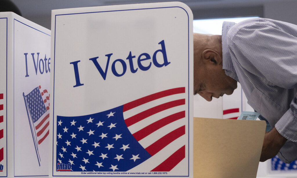 Cử tri Mỹ điền phiếu bầu khi bỏ phiếu sớm tại Arlington, bang Virginia ngày 20/9. Ảnh: AFP