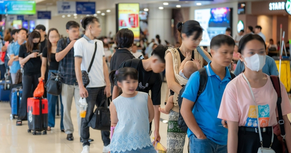 Hành khách xếp hàng làm thủ tục hàng không tại sân bay quốc tế Nội Bài ngày 19-7. Ảnh: Phan Công
