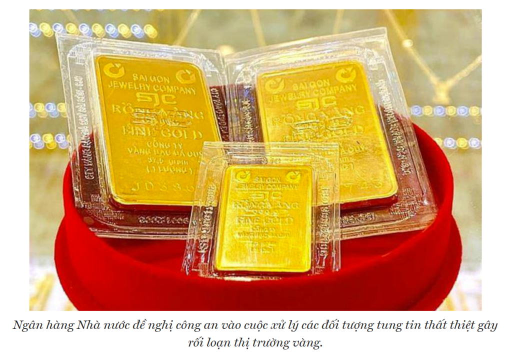 Ngân  hàng Nhà nước đề nghị Bộ Công an chỉ đạo các đơn vị liên quan kịp thời phối hợp xác minh và xử lý nghiêm các hành vi tung tin thất thiệt, đầu cơ, trục lợi, thao túng thị trường. Chỉ đạo công an các địa phương phối hợp đảm bảo an ninh tại các địa điểm bán vàng của các ngân  hàng  thương  mại  Nhà  nước, Công ty SJC; hạn chế tình trạng các đối tượng có dụng ý xấu thuê người xếp hàng mua gom vàng, gây mất trật tự trị an.