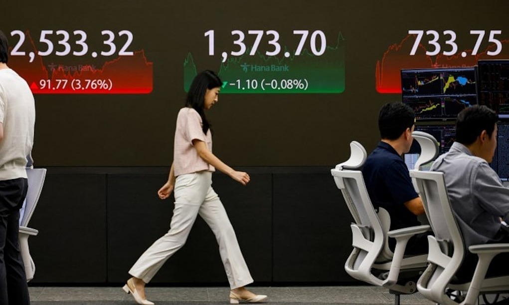 Bảng điện tử trong phòng giao dịch của một ngân hàng ở Seoul (Hàn Quốc). Ảnh: Reuters