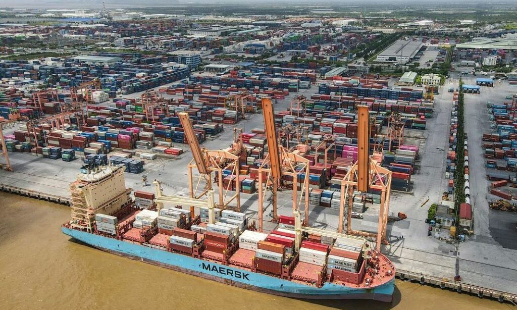 Xuất nhập khẩu hàng hóa tại cảng Tân Vũ, Hải Phòng, tháng 7/2023. Ảnh: Giang Huy