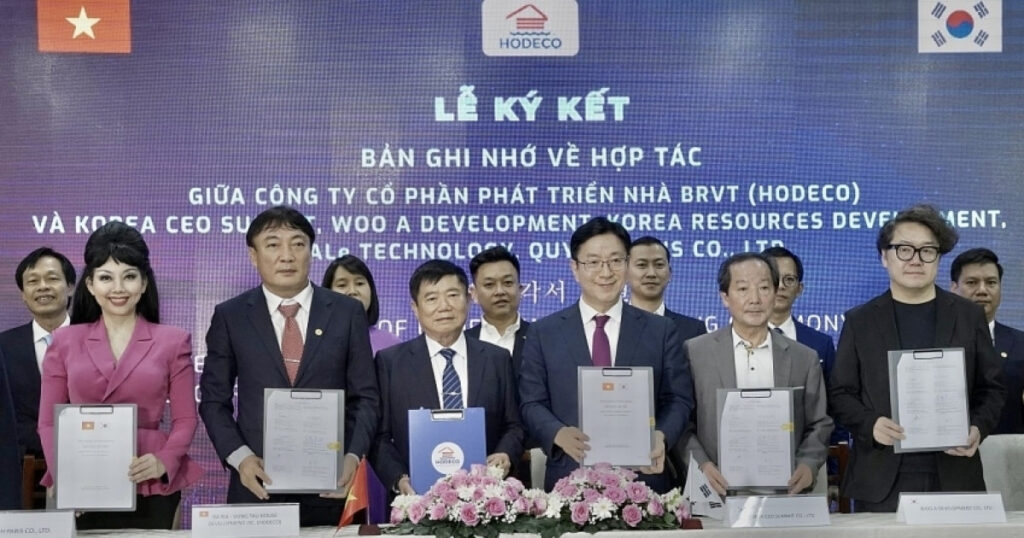 Mới đây, CTCP Phát triển Nhà Bà Rịa – Vũng Tàu (Hodeco – HoSE: HDC) đã ký kết biên bản ghi nhớ hợp tác với 5 công ty đối tác đến từ Hàn Quốc, bao gồm: Korea CEO Summit (KCS), Woo A Development, Korea Resources Development, Scale Technology và Quynh Paris Co., Ltd.