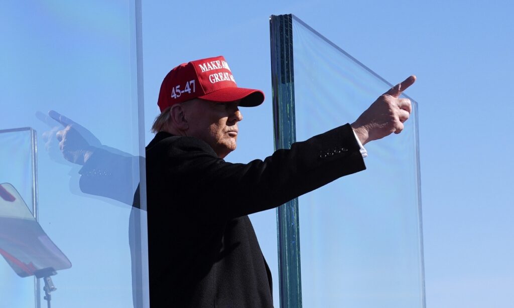 Cựu tổng thống Mỹ Donald Trump phát biểu sau lớp kính chống đạn ở Lititz, bang Pennsylvania, ngày 3/11. Ảnh: AP