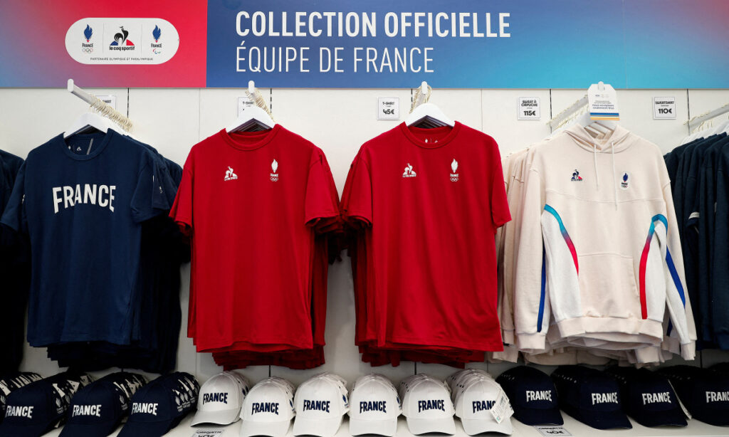 Một gian trưng bày thời trang chính hãng của Thế vận hội Paris 2024 ngày 27/6. Ảnh: Reuters