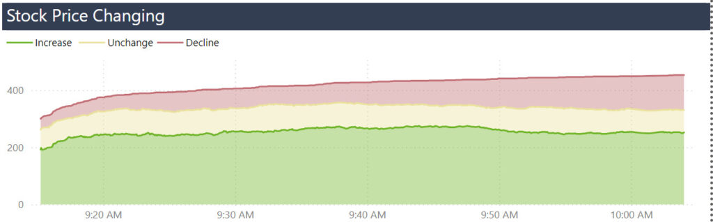 Trong 1 tiếng đầu phiên sáng 10/6, thị trường có lao lên vượt qua 1293 với lực mua đuổi không lớn, tới 9h40 thì lực mua giảm đồng pha với VN-Index về lại quanh 1293.