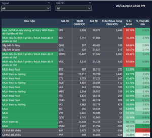 Phiên giao dịch ngày 09/04/2024 chỉ là nhịp hồi T+ dù số lượng mã chứng khoán được mua có lên mốc lan tỏa, nhưng tốc độ giao dich rất thấp, thấp hơn ở những phiên nện ẩn 3.5 triệu cổ phiếu và cao hơn là 4.5 triệu cổ phiếu/phút.