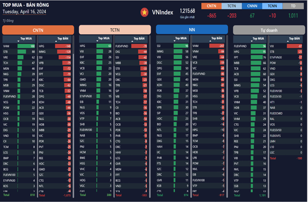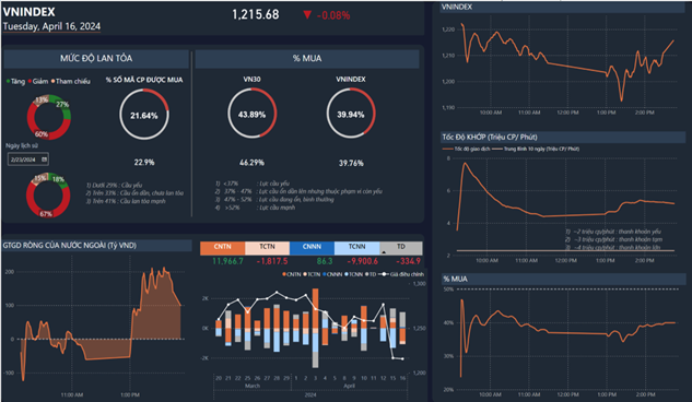 Phiên 16/04, VN-Index vùng 1188 – 1191 cần phải có vol chứ không phải tiết cung như phiên hôm nay. Thời gian phục hồi chiếm khoảng 30% tgian giao dịch nhưng ko có hiện tượng mua đuổi giá lên, dòng tiền không bị cuốn vào nhịp hồi. Độ lan tỏa còn yếu dù thị trường được các mã Ngân hàng dẫn chỉ số lên khá nhanh.
