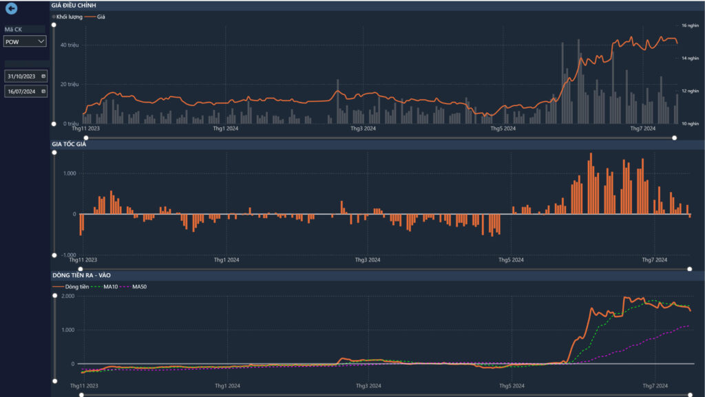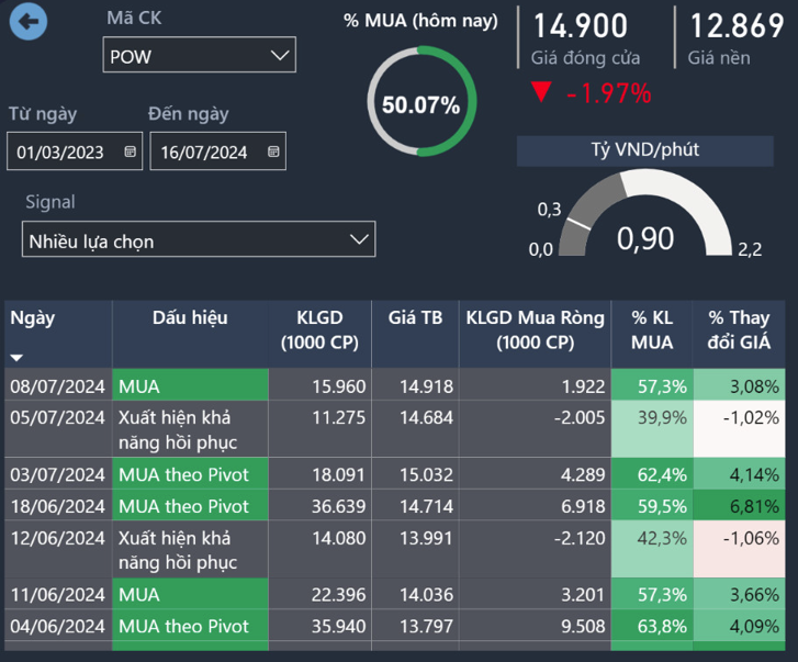 Tín hiệu cho mua lần gần nhất là 8/7 cho thấy hành động kéo xả của POW nên sau chốt lãi thì cổ phiếu POW có thể tăng nhẹ nhưng dòng tiền đang thoát.