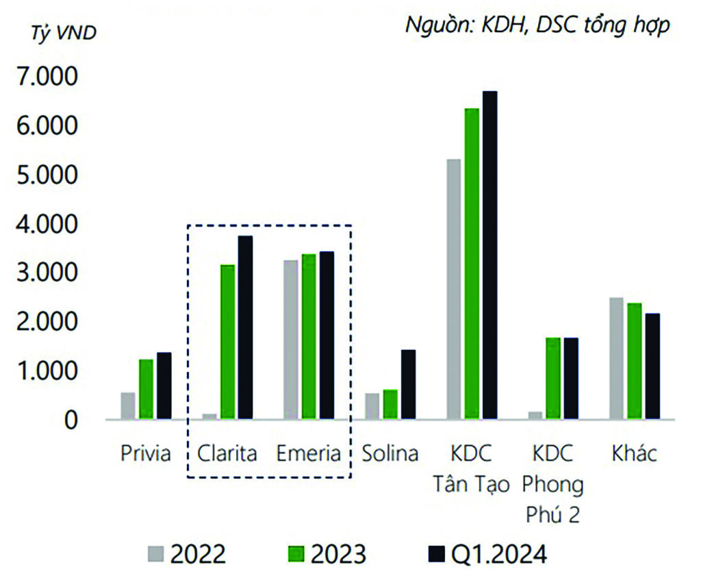 Trước đó, Ban lãnh đạo KDH chia sẻ đến hết tháng 2/2024, dự án The Privia gần như đã hoàn tất việc bán hàng. Tức doanh nghiệp sẽ chỉ còn chờ thời gian để hạch toán lợi nhuận. Ngoài ra, 2 dự án Clarita Khang Điền Bình Trưng (5,8ha, đã bán 49% cho Keppel land và dự kiến mở bán 2024) cùng Emeria (6ha, cũng chuyển nhượng 49% sang Keppel land và dự kiến mở bán cùng năm), sẽ cung cấp các sản phẩm là biệt thự và nhà liền kế, mang đến nguồn thu nhập cho công ty thời gian tới.