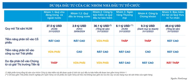 Ông Nguyễn Quang Thuân, Chủ tịch Hội đồng quản trị FiinGroup cho hay, trong nhóm các quỹ đầu tư chủ động trong và ngoài nước, các quỹ đầu tư nước ngoài được quản lý bởi các công ty quản lý quỹ được cấp phép tại Việt Nam tăng trưởng tốt trong những năm gần đây. Tổng giá trị tài sản được quản lý cuối năm 2023 là 592.000 tỷ đồng, tăng 23% so với cuối năm 2022, nhưng tỷ lệ phân bổ vào cổ phiếu còn thấp: tỷ trọng phân bổ vào trái phiếu chính phủ, trái phiếu doanh nghiệp là 71%, cổ phiếu là 17%, tiền mặt và các tài sản khác chiếm 12%. Các quỹ đầu tư nước ngoài ưa thích nhóm ngành khai thác được tiềm năng thị trường nội địa như tiêu dùng, bảo hiểm, bán lẻ, chứng khoán, thực phẩm và đồ uống.