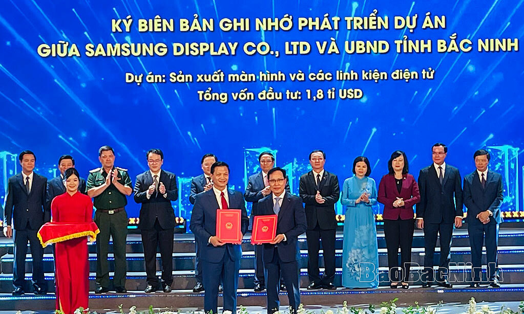 Bắc Ninh và Samsung Display vừa ký bản ghi nhớ phát triển dự án màn hình, linh kiện điện tử trị giá 1,8 tỷ USD chiều 22/9.