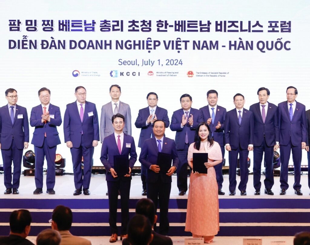 Trong khuôn khổ Diễn đàn doanh nghiệp Việt Nam – Hàn Quốc, Tập đoàn SK và UBND tỉnh Quảng Trị cũng trao biên bản ghi nhớ hợp tác về các gói giải pháp năng lượng. Bên cạnh đó, các bộ, ngành, địa phương, doanh nghiệp hai nước cũng đã trao nhiều văn bản thỏa thuận hợp tác với các tập đoàn Hàn Quốc trong các lĩnh vực đầu tư, thương mại, chuyển đổi năng lượng, công nghệ sinh học, xây dựng khu công nghiệp, công nghệ bán dẫn, y dược, hàng không, logistics, công nghệ thông tin, cơ khí…