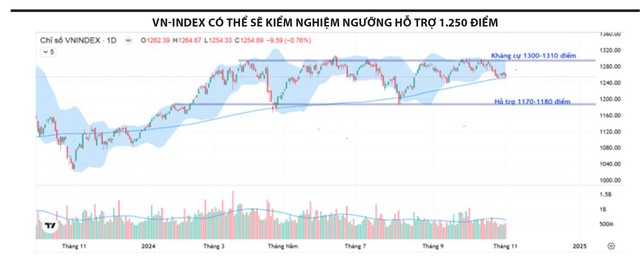 Chỉ số VN-Index tuần qua giao dịch giằng co trong khoảng 1.250 – 1.260 điểm, với thanh khoản giảm nhẹ, cho thấy lực cầu bắt đáy xuất hiện khi chỉ số điều chỉnh về vùng hỗ trợ quanh 1.250 điểm, trong khi áp lực bán cạn kiệt. Nhóm ngân hàng tiếp tục là trụ đỡ quan trọng, được hỗ trợ bởi kết quả kinh doanh quý III/2024 khả quan và kỳ vọng tăng vốn của các ngân hàng có vốn nhà nước chi phối. Ngoài ra, một số cổ phiếu vốn hóa vừa phục hồi từ vùng giá thấp, góp phần duy trì mức tăng nhẹ.