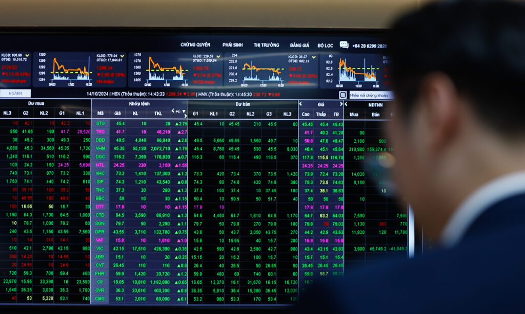 Thị trường đi dưới tham chiếu đến đầu giờ chiều, trước khi có pha rung lắc. Từ sau 14h, chứng khoán được kéo lên khi nhiều mã đã chiết khấu về mức giá thấp và bắt đầu hồi phục kỹ thuật, đặc biệt là nhóm midcap (vốn hóa trung bình).