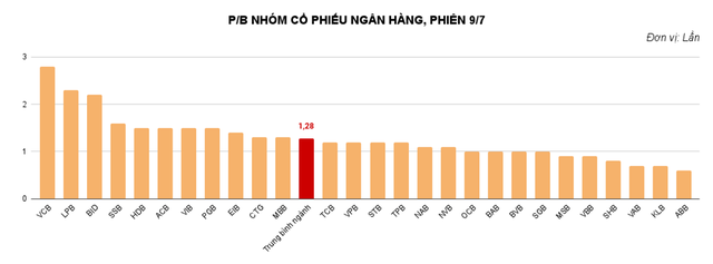Theo báo cáo Triển vọng đầu tư nửa cuối năm 2024 của Shinhan Securities, P/B của nhóm ngân hàng niêm yết trên HoSE đang được giao dịch ở mức thấp. Hiện, P/B của nhóm ngành này chỉ ở khoảng 1,55 lần, thấp hơn nhiều so với 5 năm qua do lo ngại về nhu cầu tín dụng yếu, biến động lãi suất không thuận lợi và chất lượng tài sản kém đi.