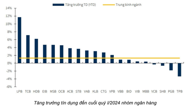 MB Research dự báo tăng trưởng tín dụng Quý II/2024 của VPBank sẽ đạt 11,5%; HDBank ở mức 9%, trong khi đó Vietinbank được dự báo tăng trưởng tín dụng ở mức 7%.